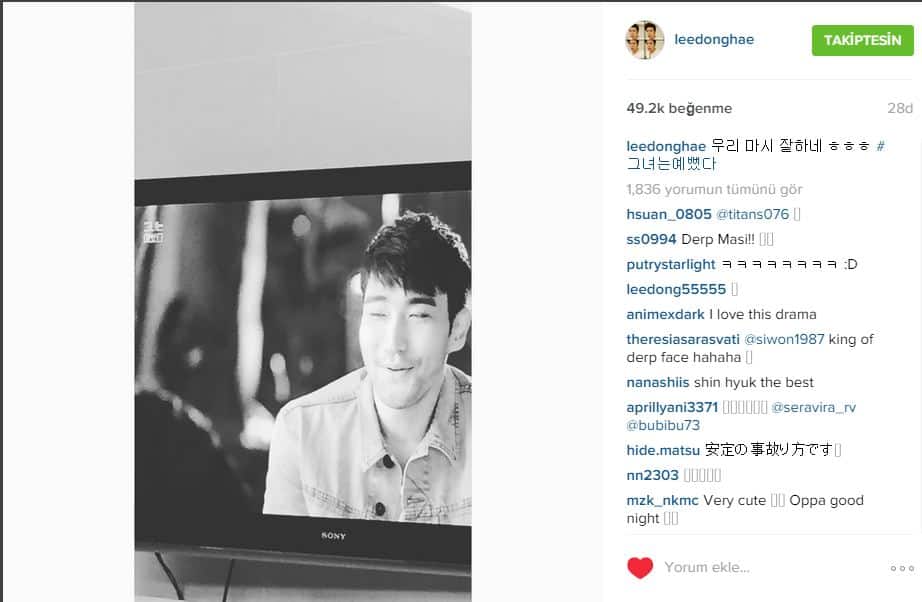 Siwon, yalnızca hayranlarından değil; grup üyelerinden de destek alıyor gibi. Super Junior’ dan grup arkadaşı Donghae, Siwon’ un oynadığı dramayı izlerken bir fotoğraf çekti ve instagramında paylaştı.