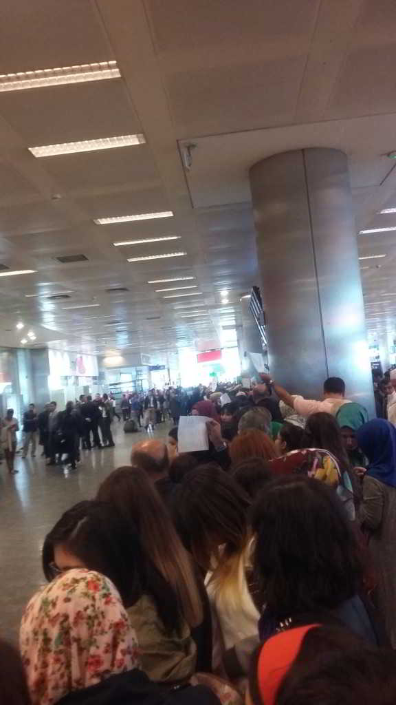 Hava alanı metrosu yolculuğundan sonra bir yandan giderek artan heyecanımızı bastırmaya çalışırken bir yandan da tamamen yabancı olduğumuz yerde koşuşturmaya başladık. Dış hatlar yazısı oradan çok güzel bir şekilde parladı ! 😀 Etrafımızda grup grup insanlar kalabalık neredeyse orayı takip ediyor tabii.