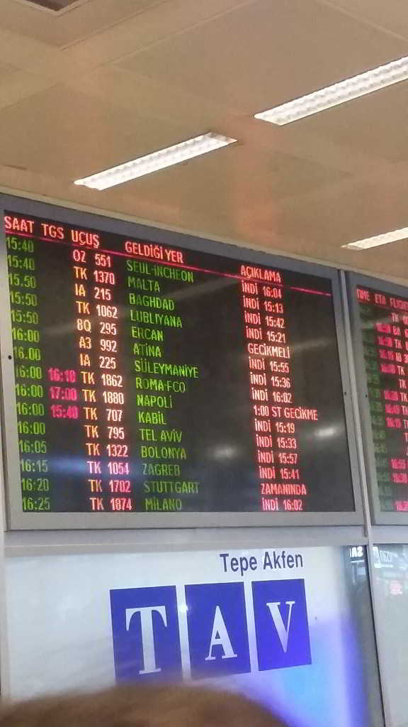Ekranda beliren şu saatin verdiği heyecan normalde 15.40‘ta inmesi gereken uçağın bir türlü iniş yapmamasıyla yerini strese bıraktı malesef.