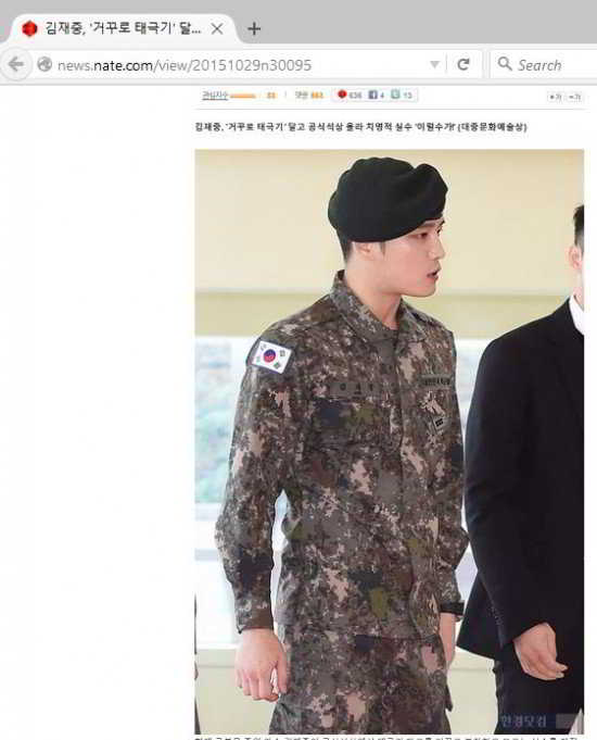 Jaejoong üniformasındaki Güney Kore bayrağını ters taktığı(kırmızı kısım üst tarafta olmalı) eleştirilerin odağında yer aldı.Aynı zamanda idol 26 Ekim’de ‘2015 KBO Kore Ligi’ öncesinde Güney Kore milli marşının sözlerinide yanlış okumuştu.