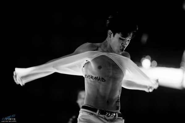 Zaten bizim ilgimizi bu değil, ‘NEVERMIND’ın bir yıl öncesindeki MAMA’da da geçmesi çekti. Jimin’in HwaYangYeonHwa dövmesi o sıralar daha çok ilgimizi çektiğinden NEVERMIND yazısına fazla odaklanmamış olabiliriz, ama şimdi düşününce Jimin’in MAMA’daki dövmelerinden birinde NEVERMIND yazıyordu.