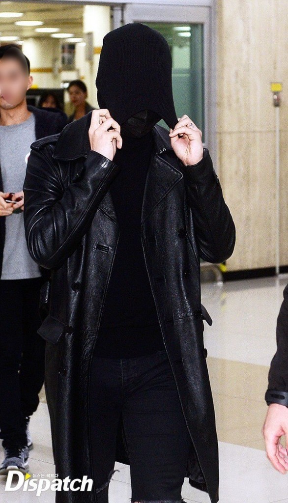 Bu görüntüsüne rağmen flaşların devam etmesi nedeniyle G-Dragon önce yüzünü elleriyle kapıyor daha sonrada şapkasıyla tamamen örtüyor.