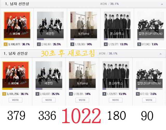 Pann tarafından 6 Kasım’da paylaşılan haberde N.Flying‘ın oylarının manipüle edildiğinden bahsedilirken aynı durum son olarak EXO grubu ve diğer gruplar içinde konuşulmaya başlandı.Çünkü oylama sisteminde bir gün sonra aynı hesap üzerinden,farklı hesaplardan ve aynı IP üzerinden oy kullanımı yapılabiliyor.Özellikle çaylak grupların oylarında bu durumun yaşandığına haberciler tarafından dikkat çekiliyor.Ödüllerin dağıtımında kullanılan oy sonuçları %20 etkili.