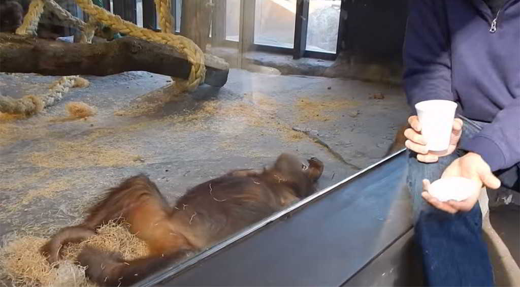 Orangutanlar öğrenme konusunda inanılmaz kapasiteye sahip olan oldukça nadir zeki hayvanlardandır. Hayvanat bahçesini ziyarete gelen konuklardan bir tanesi orangutana küçük bir ilizyon gösterisi yapıyor. Orangutanın bu ilizyon gösterisine verdiği tepkiler doğrusu oldukça eğlenceli.