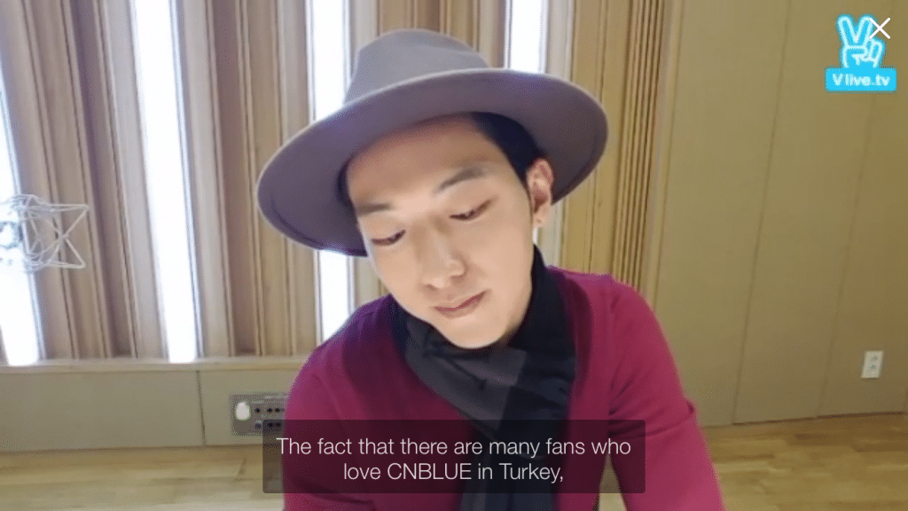 CNBLUE‘dan Lee Jung Shin 28 Aralık’ta yaptığı V App yayınında Türkiye’den bahsetti!