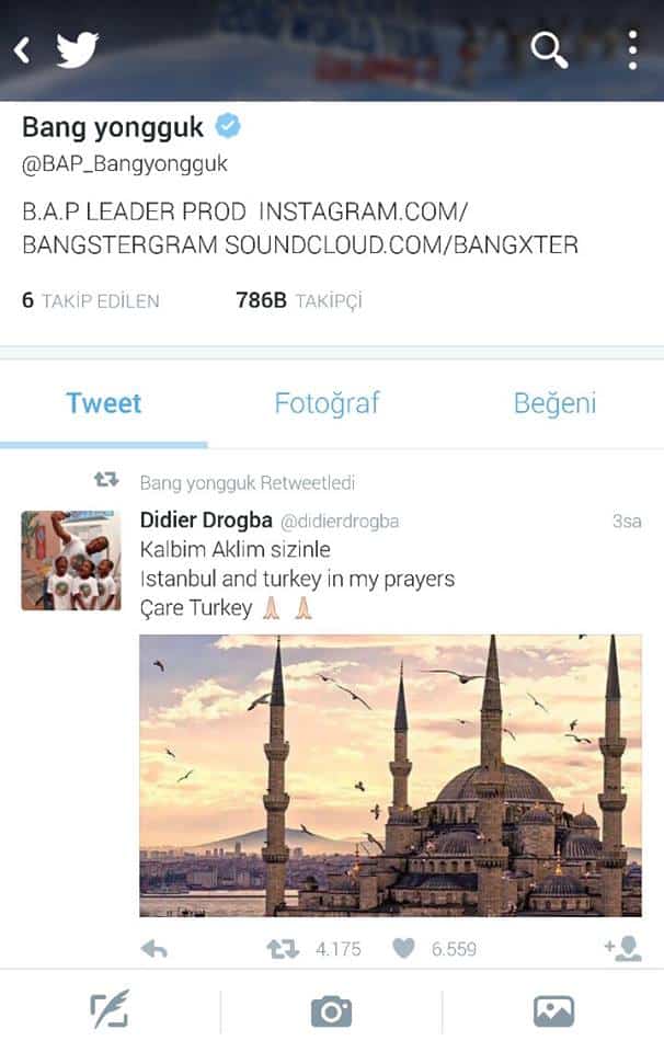 Twitter’da, Galatasaray’ın eski futbolcusu Didier Drogba’nın paylamış olduğu tweet mesajını retweet yaptı.