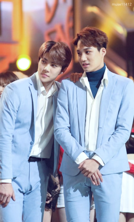 Love Me Right performansına, Kai ve Xuimin oturarak eşlik ediyorlar… Çok fazla çalışıyor olmalılar…