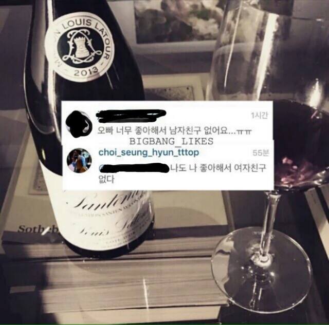 BIGBANG üyesi T.O.P genel olarak K-POP sektöründe en iyi görsele sahip kişi olarak konuşuluyor ve buna rağmen hala bekar. Bu yüzden hayranlar onun neden hala bekar olduğunu merak ediyor. En sonunda merak eden Instagram’daki bir hayranın yorumuna ise T.O.P bu merakı giderecek bir yanıt yazdı. Hayran erkek arkadaşının olmadığını çünkü onu sevdiğini yorumda belirtti, YG Entertainment şarkıcısı hayranın bu yorumuna komik bir açıklama ile cevap verdi.