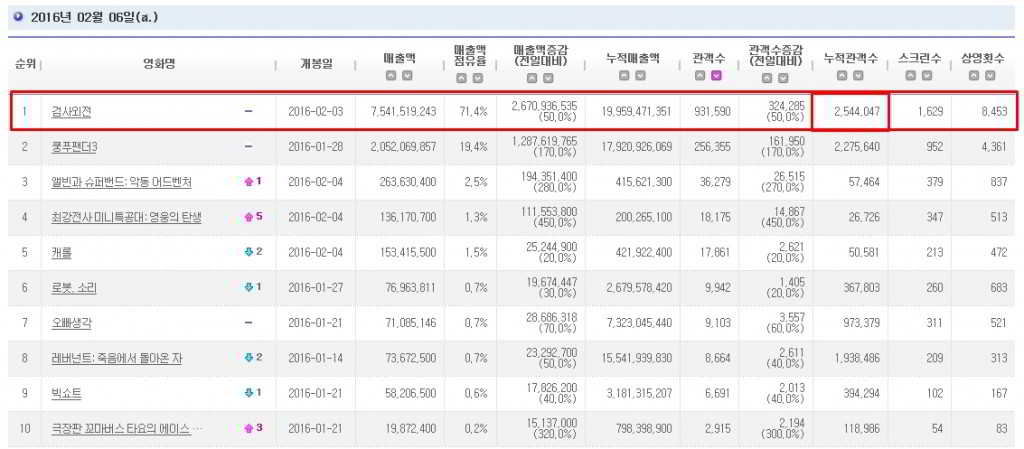 6 Şubat 2016 = 931,590 Bilet Sattı. Toplam İzleyici sayısı 2,544,047