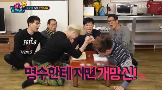 Birçok yarışma yapıldı, ancak içlerinde en komik olanı ise Jackson ve Park Myung Soo’nun bilek güreşi oldu. Biri grubundaki en komik olan üye diğeri ise komedyen olunca ikisinin kapışması izleyenleri güldürdü. Siyah fasulye noodle üzerinde bilek güreşi maçı yapıldı. Myung Soo uzatmak için elinden geleni yapmasına rağmen oyun Jackson’un kazanmasıyla sona erdi. Komik anların yanında oyunun kazananı ise Jackson oldu.