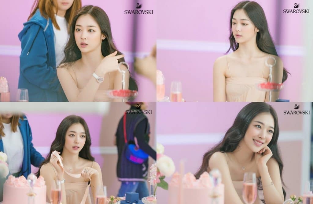 Sulli ‘Swarovski’ markası için çekindiği fotoğraflarda fazlasıyla zarif ve şık görünüyor.