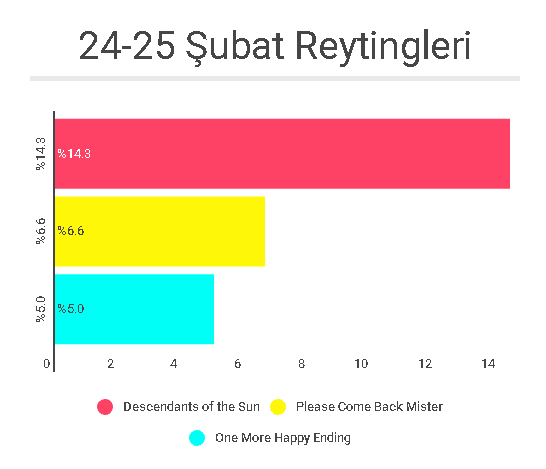 Dizi 6.6 ile reyting yarışındaki yerini alırken üçüncülüğü MBC’nin “One More Happy Ending,” dizisi 5.0 ile aldı.
