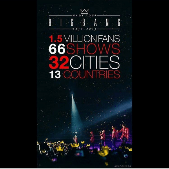 “MADE” dünya turu 13 ülkede ve 32 şehirde yalaşık 1.5 Milyon kişinin katılımıyla gerçekleştirildi.Serinin son konseri ise 6 Mart‘ta Seul Olimpiyat Park’ta gerçekleştirildi.Konser Naver‘ın V app uygulaması üzerinden canlı yayımlanarak grubun tüm Dünya’da ki hayranlarına performanslarının ulaştırılması sağlandı.