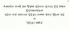 “INFINITE bir tür klip çekerken (görünüşe göre BTD), Sunggyu’nun dudaklarını oynatması gerekiyordu ama o sinirlenip durdu (Ç/N: yapamadığı için) ve PD ona kameraya bakmasını söylüyordu ve Sunggyu, “PD-nim, sen denesene” dedi.
