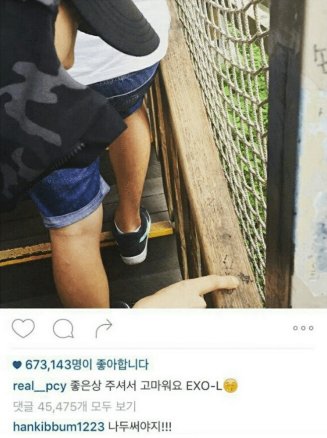 - [ +36 / -2] Dürüst olmak gerekirse, gerçekten de kabaydı hahah zaten beyinsiz olduğu için birçok genç hayranları da Instagram’da sadece karalamak bile olsa yazmasını umuyorlar hahahahahah Park Chanyeol Instagram’dan silinmesi gerekli ahahhahah hiçbir işe yaramiyor zaten