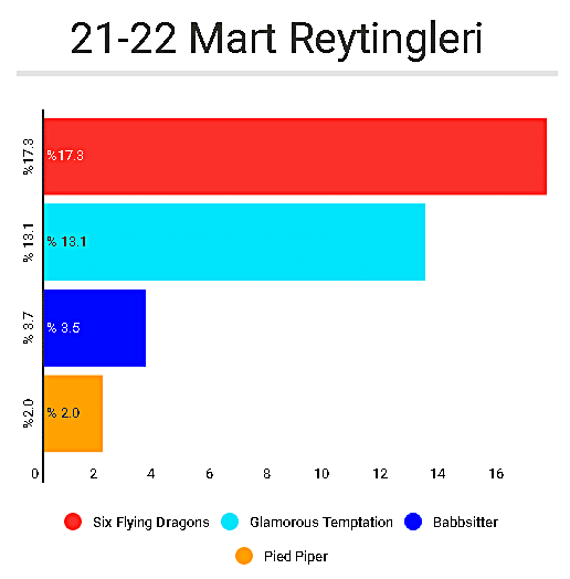 1. [+561, -24] Six Flying Dragons %17 reyting ile son bulmuş ama Glamorous Temptation %13 ile bitirmiş,çekişmeli geçmiş.