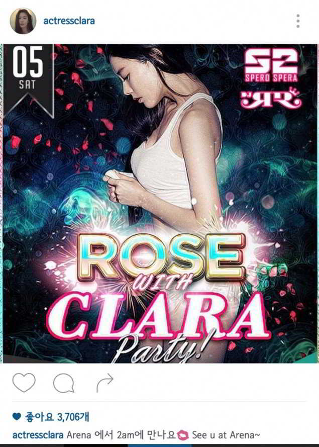 İddiaya göre ilk buluşma 5 Mart’ta Clara’nın düzenlediği Gül Partisinde gerçekleşti. Koo Jun Hoe beyaz maske ile Clara‘nın yanında oturuyor.Daha sonra ikilinin birlikte görüntülenmesi ise 20 Mart‘ta gerçekleşti.Bu defa netizenlerin iddialarına göre Koo Jun Hoe yalnız değildi ve iKON üyelerinden Kim Jin Hwan‘da onunla birlikteydi.Clara daha sonra resmi Instagram hesabından klüpte olduğunu doğrulayan paylaşımlar yaptı.Koo Jun Hoe ise ertesi gün akşamdan kalmalar için yemek yediğini açıkladı.