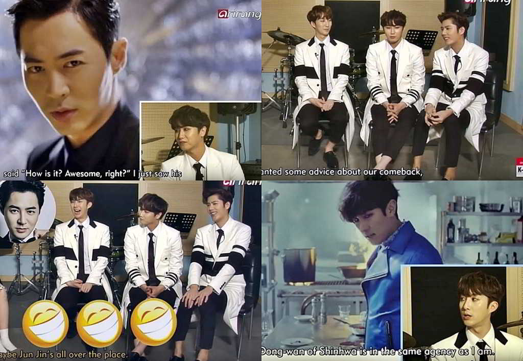 ” Showbiz Korea ” programının sunucusu,röportajın ortasına doğru sözü Shinhwa‘ya getirerek: ” Siz uzun süreli bir grupsunuz,Shinhwa da öyle “ dedi.Sunucunun bu söylemine ” onlar en iyisi cidden ! “ diyerek tepki veren Kim Kyu Jong‘dan hemen sonra,sunucu: ” Geri dönüş aktiviteleriniz sırasında vs. onlarla görüştüğünüz,karşılaştığınız oldu mu ? “ diye sordu.