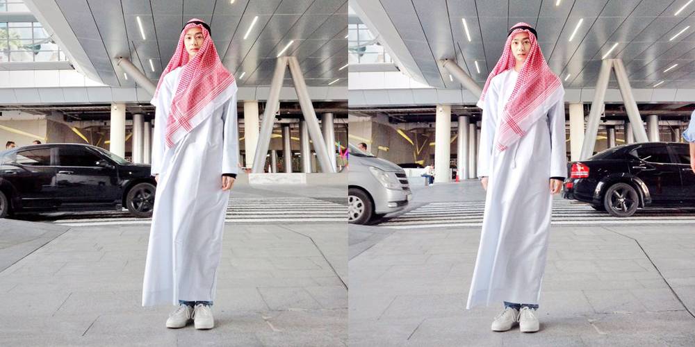 Havaalanında geleneksel arap kıyafetlerini giydi, sonra da çektirdiği fotoğrafı grubun resmi Twitter hesabından paylaştı!