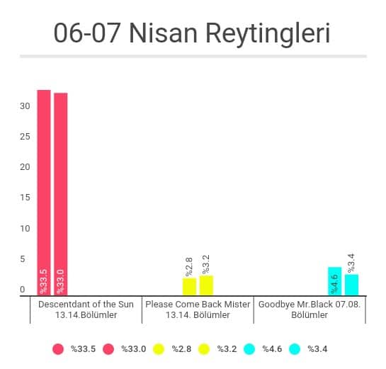 Geçtiğimiz hafta 30-31 Mart‘ta %40 oranını ile dizi ilk rekorunu kırarken bu hafta yayımlanan 13.ve 14. bölümlerinde de %30 oranıyla ilk sırada yer almayı başardı Aynı anda başlayan “Please Come Back Mister” ise izleyicinin beğenisini kazansa da reytingler açısından talihsizlik yaşıyor..