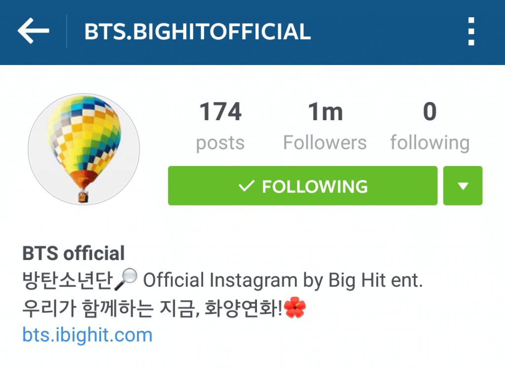 BTS‘in artık Instagram‘da 1 milyondan fazla takipçisi var.
