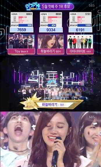 Eunji bugün ki SBS Inkigayo bölümünde ‘Hopefully Sky’ şarkısı ile 2.birinciliğini aldı!