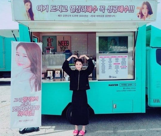 08 Mayıs‘ta IU resmi Instagram hesabı üzerinden; ” In Na tarafından gönderilen yiyecek kamyonu.Anne In Na,Anne hayırlı bir kız evlat olacağım.Bonkör In Na ” yazısı ile paylaştı.Fotoğrafta IU, Yoo In Na’nın gönderdiği yiyecek kamyonunun önünde kalp işareti yaparak gülümsüyor.Yemek kamyonun üzerinden ise , “Bu lezzetli yiyecekleri yiyin ve sıkı çalışıp başarılı olun !!!”