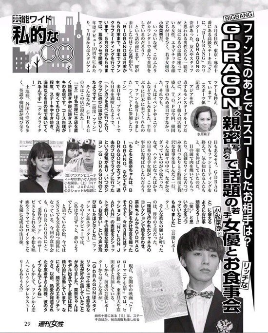 Haber: Japon medyası, ”Komatsu Nana ve G-Dragon Tokyo’da bir restoranda görüldü”