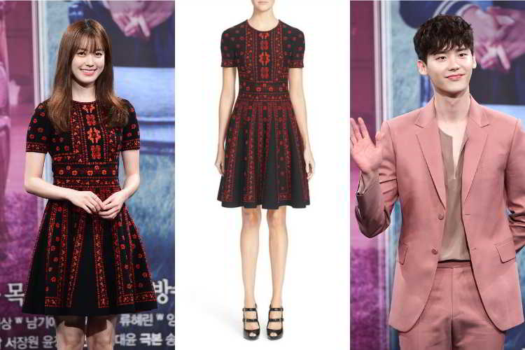 Han Hyo Joo basın toplantısı Alexander McQueen tasarımı, jakar desenli bir elbise giydi. Kırmızı ve siyah renkten oluşan bol etek tarzı, çiçek detaylı elbise $2,145 değerinde. Aktris elbisesini metal detaylı rugan bir ayakkabıyla kombinlerken, saçlarını düz kullanmayı tercih etmiş.