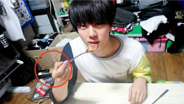 BTS‘den Jin‘e ise benekli bir kolide kral boy prezervatif ürün hayranları tarafından hediye edildi.