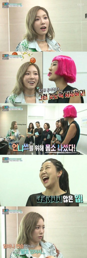 Kim Sook Tiffany’yi göstererek Taeyeon’a, “Siz çocuklar yakın değil misiniz?” diye sorunca, Taeyeon, “Evet biz evli çiftler gibi yakınız.” diyerek cevap verdi.