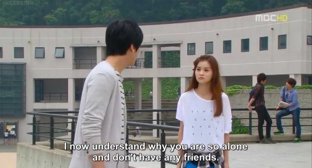 Aslına bakarsanız sadece bu dizideki okul değil, okul dizilerindeki birçok okul fazla güzeldi. İyi tasarlanmış, güzel bütçelerle inşa edilmiş, birçok imkanı içinde barındıran, mekan olarak bir okulda olması gereken tüm ihtiyacı karşılayan, içinde okuyor olsan seve seve okula gitme ihtiyacı hissedeceğin yapılar, daha doğrusu kampüsler. Çünkü çoğu tek bir okul binasından ibaret değil, spor salonu, bahçesi ve birkaç birimiyle beraber kocaman bir kampüs, nasıl oluyor da bir ‘lise’ oluyor biri bana açıklasın? Akla Kore’deki tüm okullar böyle mi sorusunu getiriyor, ‘Yok canım değildir, iyi olanları seçip dizide kullanmışlardır’ deyip avutuyorum kendimi. Hiç üzülmeyin yani, her Koreli genç güzel fiziksel şartlarda okuyor değildir deyip geçelim ^^