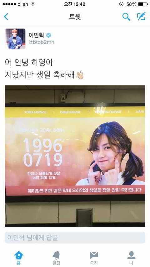 [+63 -0] Geçen gün BTOB’nin en büyük abisi Minhyuk, Apink’in en miniği Hayoung’un doğum gününü kutladı. <3