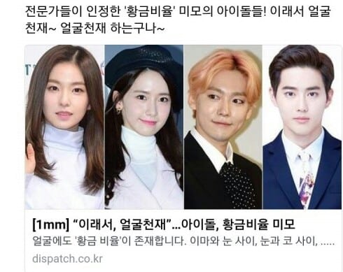 Gruplarda görsellik bakımından önemli plana çıkan ve altın oranlara sahip olarak görülenler,Kız Grupları için Yoona ve Irene iken Erkek Grupları için Suho ve Jinwoo olarak seçildi.