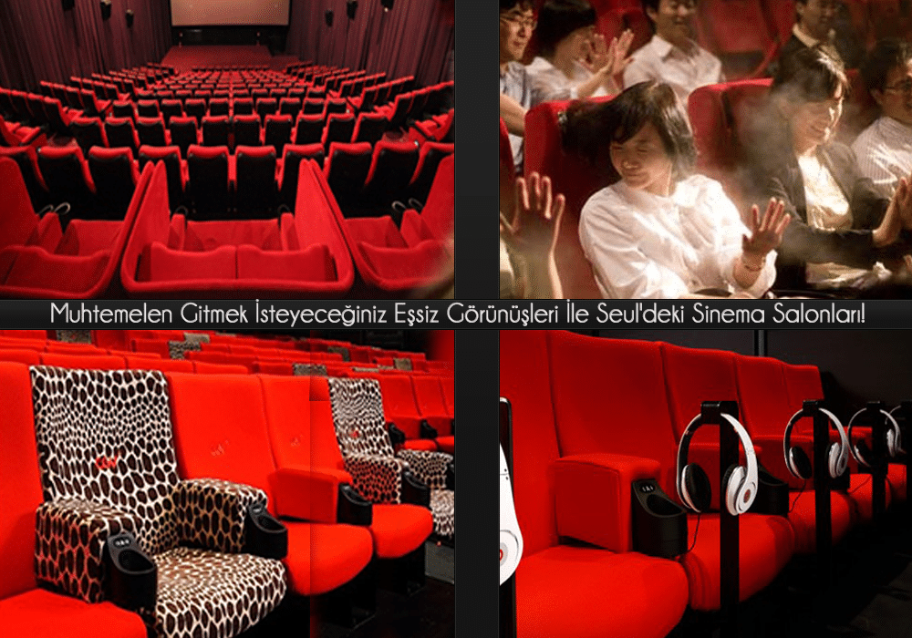 Koreliler,Hollywood filmlerini çok sever.Favori filmlerinin temalarını sinema salonlarına uygularlar.Bazıları ise tamamen farklı temalarla karşımıza çıkar.Filmlerin daha gerçekçi görünmesini sağlarlar.İşte sizin için derlediğim 10 sinema salonu ve özellikleri!