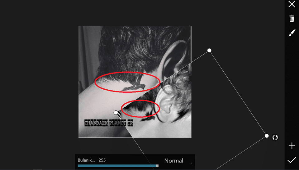 Birilerinin bakış açısıyla anlatılan şey, ilk fotoğrafta Baekhyun’un çene yapısına bakıldığında sözde Chanyeol’ün paylaşılan resmine oranla daha sivri görünüyor. Fotoğraflar karşılaştırıldığında, kulak arkasında yaptırılan dövme farklı pozisiyonlarda bulunmaktadır. Kişinin Baekhyun değilde Chanyeol olduğu öne sürülen fotoğrafdaki dövme kişinin saçları tarafından az miktarda da olsa kapatılıyor. Baekhyun’un Nylon çekimlerindeki fotoğrafında ise saçları dövmeden uzakta bulunmaktadır.