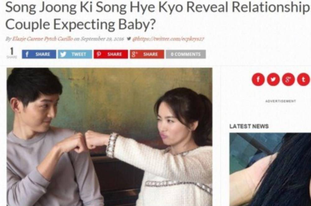 30 Eylül’de iddialar için “Kesinlikle doğru değil. Bu çok saçma. Biz sadece bu konuda gülüyoruz,” diyerek medyaya konuşan iki ‘Descendants of the Sun’ oyuncusu hala sadece iyi arkadaş olduklarını sözlerine ekledi. İngiliz yurtdışı medyasında, Song Joong Ki ve Song Hye Kyo’nun gizli bir düğün planladığı hakkında haber yapılmıştı, ve hatta Song Hye Kyo‘nun şu anda hamile olduğu iddia edilmişti.