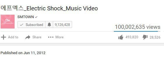 f(x) YouTube’da 100 milyon kez izlenime ulaşan sayılı K-Pop sanatçısından biri oldu.