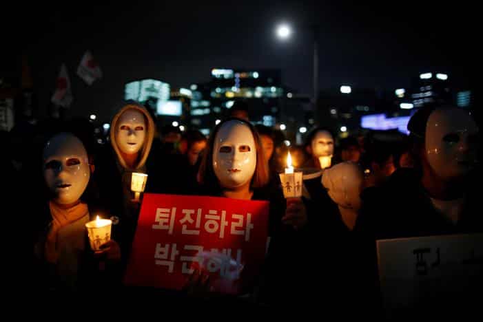 Yaklaşık bir milyon kişi Seul Meydanına toplanarak Başkan Park’ı istifa etmeye ve ülke yönetimini idare edemediği için protesto etmek amacıyla toplandı.Medyadsla bir milyon kişiyi kontrol etmesi için 260,000 polisin görev yaptığına yer verildi. Mevcut cumhurbaşkanlığı skandalı, Başkan Park’ın uzun süredir arkadaşlığını ve sırdaşlığını yapan Choi Soon Sıl adında bir kadının devletin gizli bilgilerine, başkanın kararlarına, işe alımlara, politikaya, ve ülke yönetiminde daha bir çok konuya karışmış olmasına ilişkindir. Skandal duyulduğu andan itibaren ülkede sular bir türlü durulmuyor. Bu hafta sonu Seul’de protestocuların sayısı 1 Milyon’a ulaştı ancak her geçen gün insanlar tepkilerini göstermek için meydanlara akın ediyor.