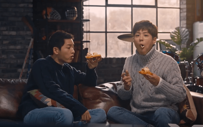 Dominos’s Pizza, firmanın modelleri olan Song Joong Ki ve Park Bo Gum’un oynadığı yeni pizza karışımının reklamını yayınladı. Yakışıklı ikili, içinde eriyen gravyer peynirli ve kısık ateşte pişen domuz eti olan pizzayı iştahla yerken görülüyor.
