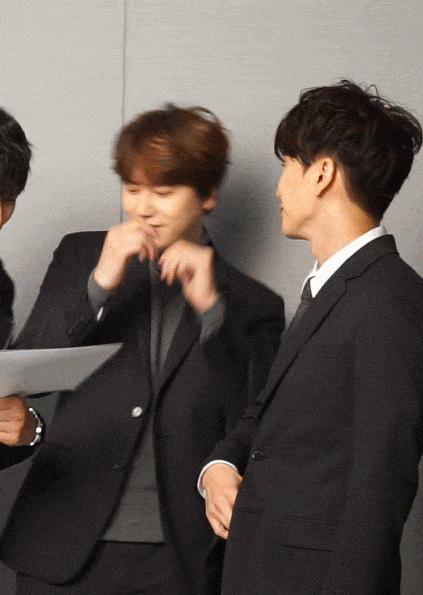 Beyler biçimli,gri takımların içinde çok havalı ve uzun bir aradan sonra grup programı için bir araya gelmekten dolayı mutlu görünüyorlar.