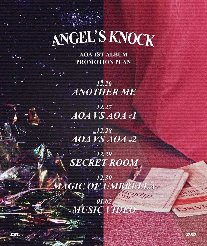 Posterde görülen 26 Aralıkta ilk teaser “ANOTHER ME” yayınlanacak.Ardından 27 Aralıkta “AOA VS. AOA # 1“,28 Aralıkta “AOA VS. AOA #2”,29 Aralıkta “SECRET ROOM”,30 Aralıkta “MAGIC OF UMBRELLA” ve en sonunda 2 Ocakta müzik videoları yayınlanacak.