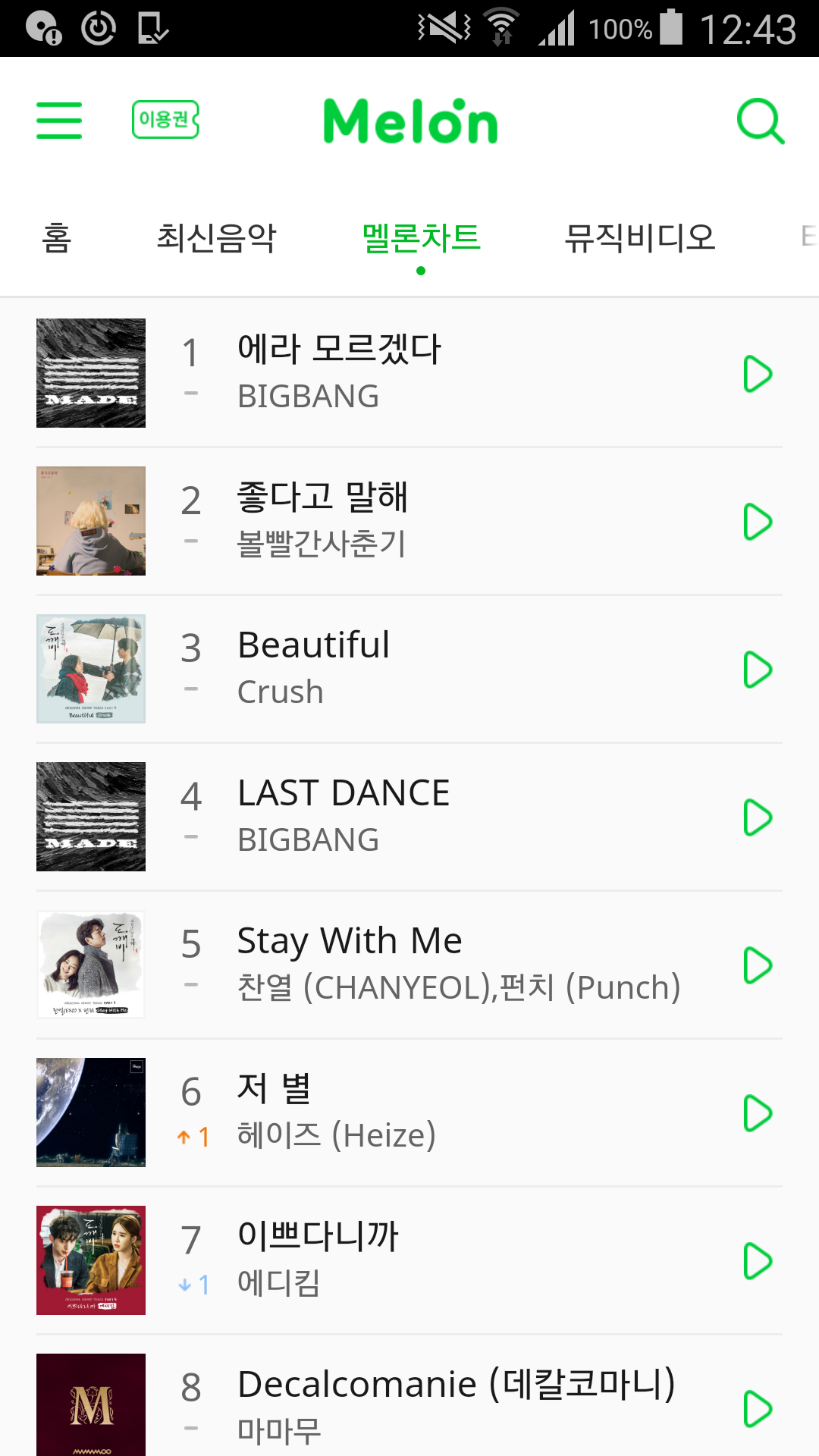 Şarkı, Kore saat dilimine göre 21 Aralık gece yarısında yayımlandığında; genie, Olleh ve monkey3 dâhil olmak üzere 7 önemli müzik listesinde 1 numaraya yükselerek All-Kill yapmak üzereydi. Bu yeni grubun yükselişi, listeye hâkim olan Big Bang, EXO ve “Goblin” OST‘lerini geride bıraktığı için kesinlikle daha da etkileyici oldu.