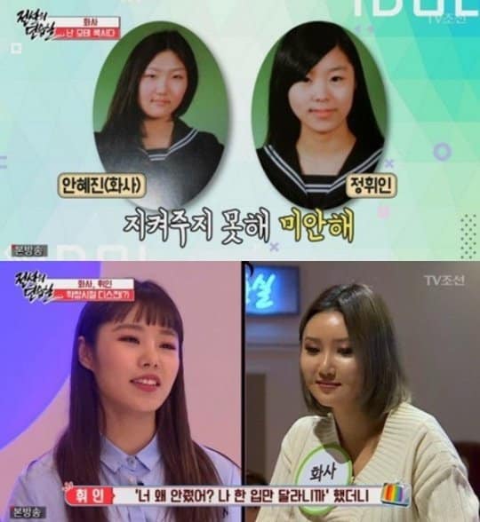 Programda sunucu Hwa Sa’ya seksi bir imaja sahip olduğunu, küçükken de böyle olup olmadığını sorduğunda şarkıcı kendinden emin bir şekilde cevap verdi. Fakat, Whee In tam tersi şekilde “Küçükken böyle değildi” diyerek izleyicileri kahkahaya boğdu. Liseden beri ikisi çok yakın arkadaşlar.