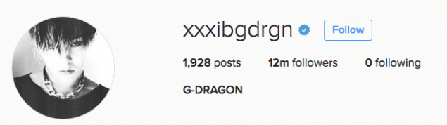 Ünlü idolün Instagram’daki takipçi sayısı bir milyon daha arttı. 12 Milyon takipçi sayısına ulaşmış oldu.Evet yanlış duymadınız takipçi sayısı tam 12 milyon oldu. Ki bu rakam K-Pop sanatçıları arasında en fazla takipçi sayısı olanlardan birisi.Peki G-Dragon’un başarısının sırrı ne sizce ? Tabiki birbirinden sevimli,şirin,karizmatik ve mükemmel kısacası G-Dragon stiline özgü fotoğraflar yayınlaması.