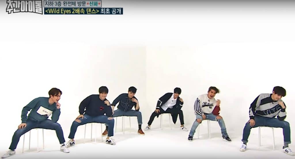 Shinhwa, MBC Every1’in popüler eğlence programı ” Weekly Idol “da iki hafta üst üste göründü ve 2001’deki hit şarkısı ” Wild Eyes “ın ikon olmuş sandalye dansının iki kat hızlı versiyonunu başarıyla gerçekleştirerek sunucuları etkiledi.