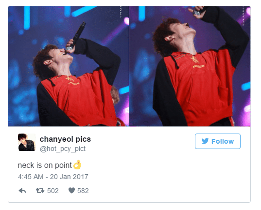 Chanyeol’un sadece boyun resimlerini, video ve gifleri yayınlayan bir Twitter hesabı bile var. Hesabın 8bin takipçisi bulunuyor ve bu boyna hayran olanları ağırlıyor.