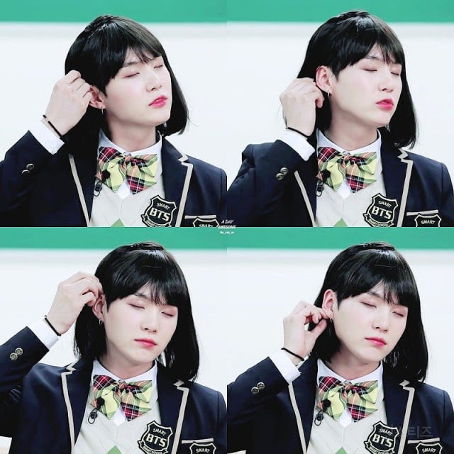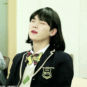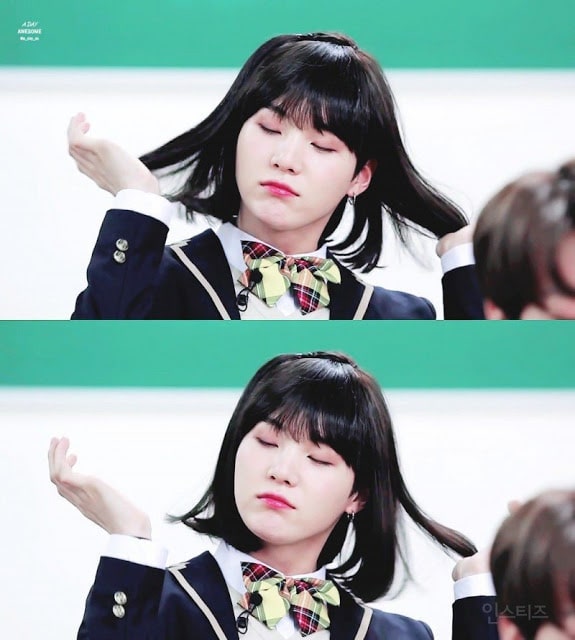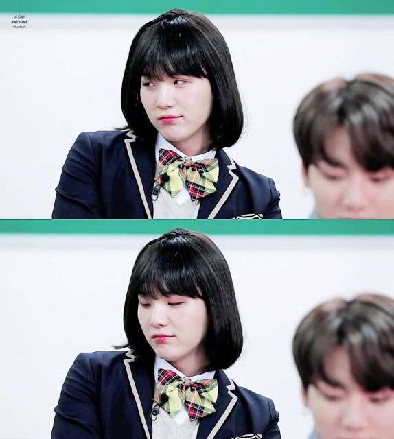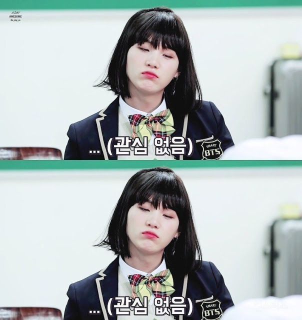 Skeç için bütün üyeler birer öğrenciye dönüştü. Suga ise bir erkek öğrenci değil, kız öğrenci olarak karşımıza çıktı.