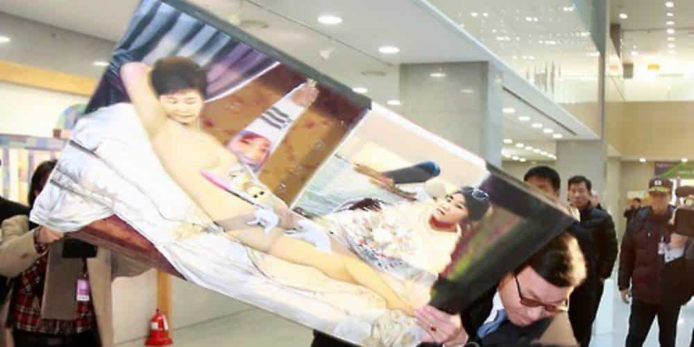 Kore Minjoo Partisi’nden Siyasetçi Pyo Chang Won, Başkan Park Geun Hye’nin çıplak tablosunu içeren bir galeri sergisi açması nedeniyle açığa alındı.