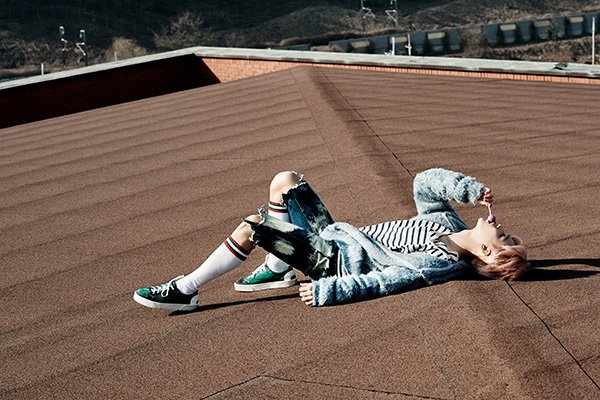 Fotoğraflara baktığınızda uzanıp şeker yiyen Jimin, huzurlu bir şekilde gözleri kapalı etrafı dinleyen Jin, direğe tutunan J-Hope ve kağıttan uçak uçurtan Jungkook görmeniz mümkün.